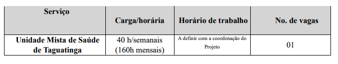 Agente de Vinculação e Retenção – Unidade Mista de Saúde – Taguatinga/DF. - Os candidatos cujos currículos forem selecionados serão chamados para entrevistas entre os